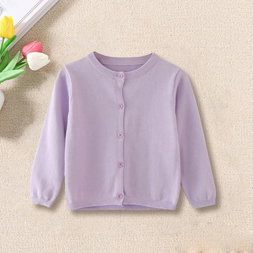 HOT ! Girls Crewneck Cardigan Long Sleeve Single Breasted Sweater Loose Casual Open Front Button Jacket for Kids
