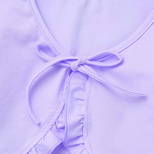• Kids Girls Cotton V Neck Long Sleeve Strap Tie Front Closure Ruffle Lace Warm Top Cape for Ballet Dance Gym Workout