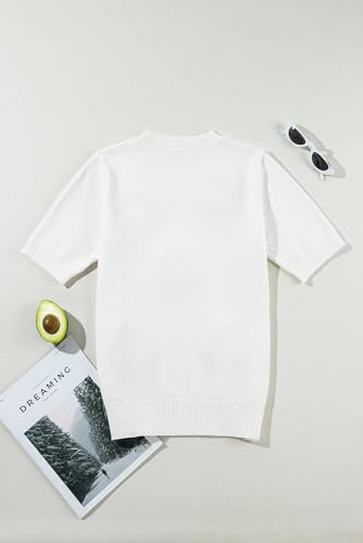 Breathable and Cozy White Short Sleeve Sweater with Floral Decoration 1