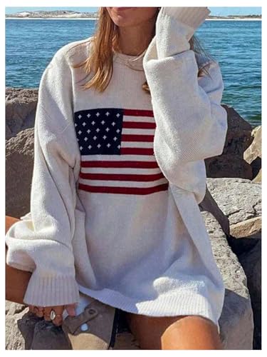 HOT ! Floerns Girl's Flag Print Long Sleeve Sweater Crew Neck Knitted Casual Pullover Tops