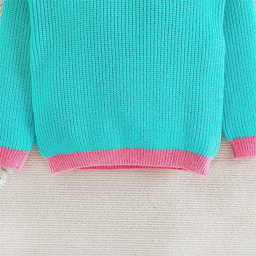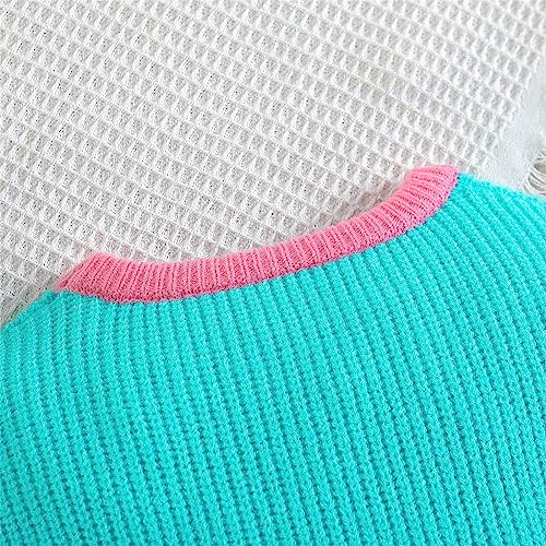 Kids Girls Knit Pullover Sweater Toddler Long Sleeve Crew Neck Contrast Casual Blouse Tees Fall Warmth Comfy Tops 6