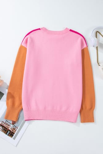 Women's Bonbon Three Tone Contrast Round Neck Loose Sweater - Stylish and Cozy 3