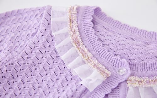• Elegant Design: This little girl cardigan features a charming ruffled collar with delicate lace trim, adding a touch of sophistication to outfit