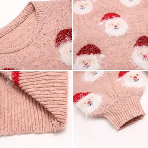 Family Matching Christmas Sweater Santa Claus Print Long Sleeve Knit Pullover Tops for Women/Men/Boys/Girls 2