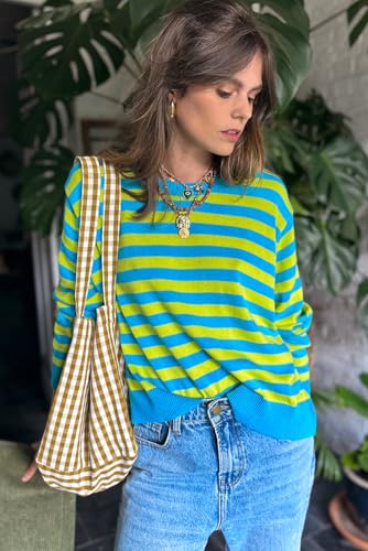 • ④ 《Easy to Pair》: The vibrant green and stripe pattern makes this sweater easy to mix and match with your favorite jeans or skirts, perfect for casual outings.