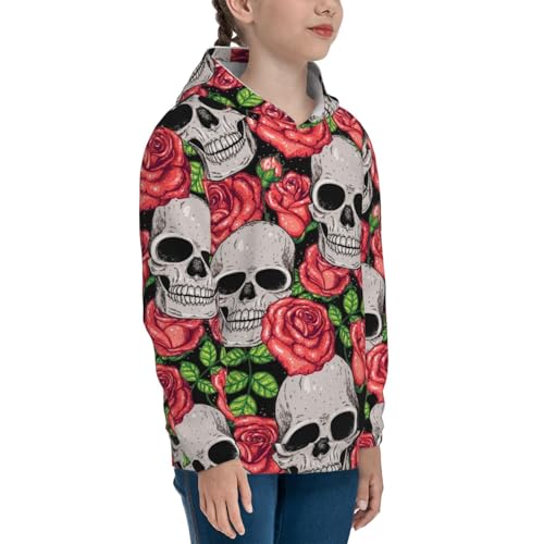 Skull and Roses Kid Hoodies Boys Sweatshirts Girls Pullover with Pocket 7