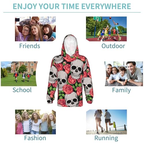 Skull and Roses Kid Hoodies Boys Sweatshirts Girls Pullover with Pocket 5