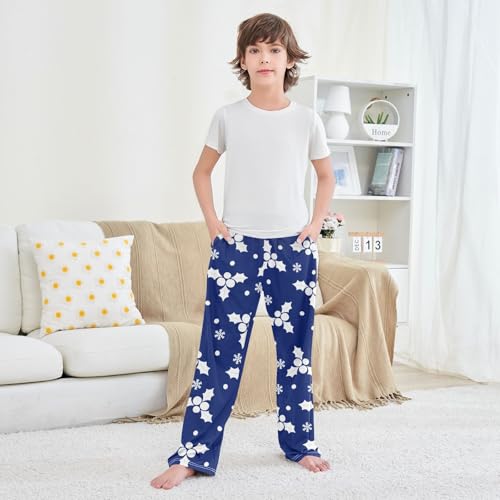 HOT ! Boys' Pants Christmas Berries Blue Holiday Long Bottoms Jogger Pants Elastic Waist Trousers with Pockets S-XL
