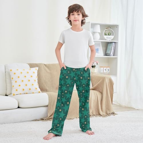 ZZKKO Christmas Green Stars Boys Pants for Kids Jogger Pants with Pockets S-XL 6