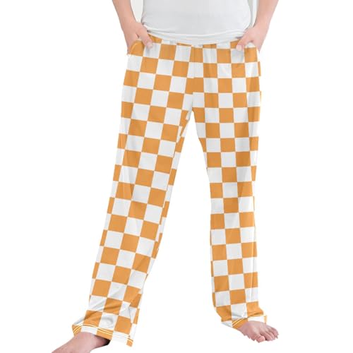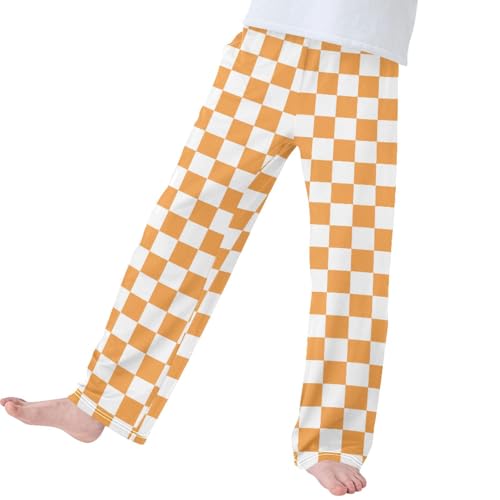 Pigsaly Boys pajama bottoms Boys' Pants Orange White Squares Plaid Long Bottoms Checkered Lattice Jogger Pants Trousers L 6