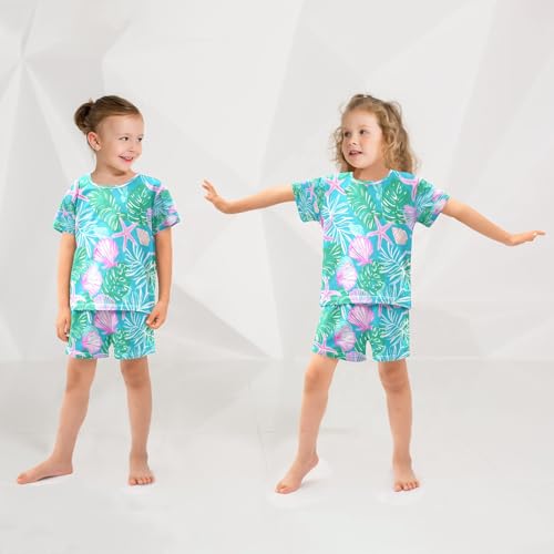 Tropical Leaf and Shell Kids Pjs Set Boys Girls Summer Short-Sleeve Sleepwear Pajamas 2PCS 4