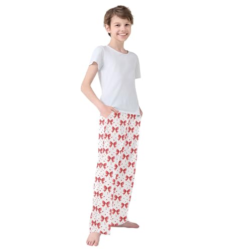 Red Bow Long Pajama Pants Elastic Waist PJ Bottoms with Pockets S A113382 1