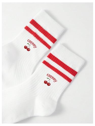 SHENHE Kid's Crew Socks Stripes Cherry Print Breathable Sports Athletic Mid Calf Socks for Boys Girls 6