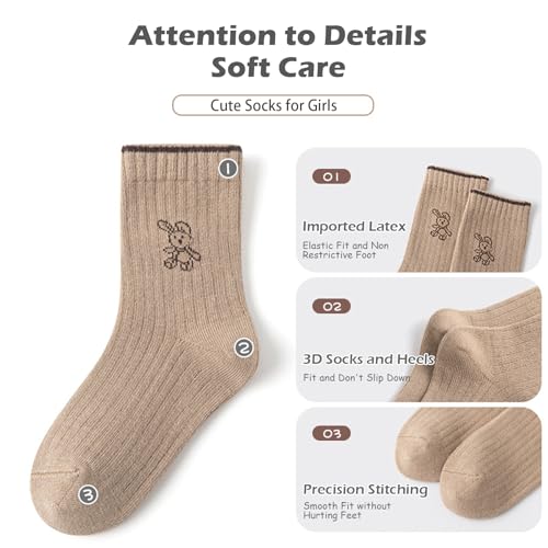 Socks for Kids Ribbed Cuffs Cartoon Embroidery Mid-Calf Crew Socks Fashion Cute Casual Kids Socks 5 Pairs 1-3 Years 6