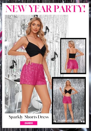 Zando Elastic High Waist Sequins Shorts for Women Solid Glitter Straight Leg Hot Bottom for New Year Disco Party Club Concert 5