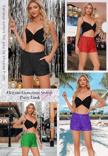 • Eye-Catching Design: The glittering sequin shorts feature a high-waisted, loose-fit design that offers both comfort and style. The elastic waistband ensures a secure yet flexible fit, making them perfect for dancing, parties, and festive occasions.Made with high-quality sequins that won’t easily fall off, this sequin shorts are built to maintain their dazzling appearance even after multiple wears.