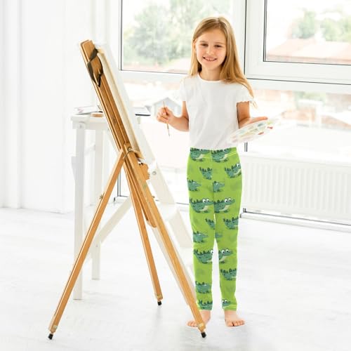 Crocodile Green Cartoon Girls Casual Leggings for Kids Printed Long Pant Bottoms Stretch and Soft 6