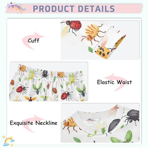 Pigsaly Pajama Set 2 Piece Insects Bugs Beetle Dragonfly Pajama Sets Long Sleeve Pjs Sleepwear 8Y 4