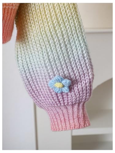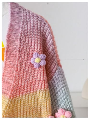 More information about Girl's 3D Floral Cardigan Cute Rainbow Knit Cardigan Sweaters Open Front Ombre Long Sleeve Sweaters Outwear