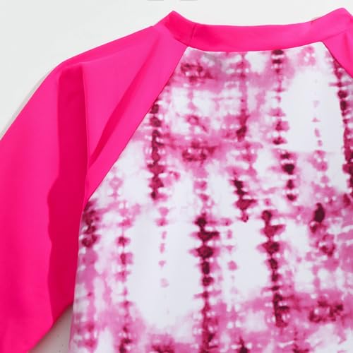 Girls 2 Piece Long Sleeve Rash Guard Set Tie Dye Swimwear Swimsuits Kids Bathing Suits Swim Shirt with Bikini Bottoms 3