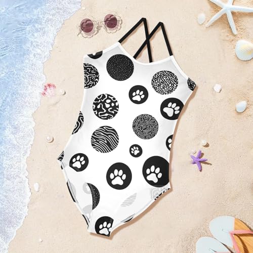 Girls Swimsuit Black Polka Dot Pattern One Piece Swimwear 5