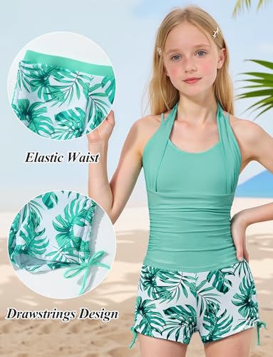 Happy Cherry Girls 2 Piece Swimsuit Halterneck Tankini Beach Swimwear Tropical Printed Swim Shorts Bathing Suit 3