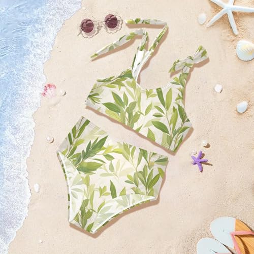 HOT ! Green Branch Olive Seamless Pattern Girls' Two Pieces Kids Bikini Set Beach Swimsuit Swimming Suits Adjustable Shoulder