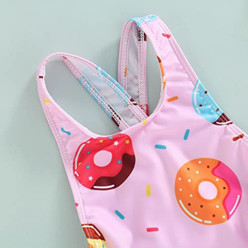 Qiylii Toddler Girls Strap One-Piece Bathing Suit Backless Cute Dount Cake Swimsuit Overall Swimwear Kids Ruffles Beach Wear 3