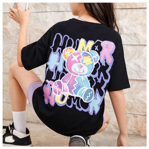 HOT ! SweatyRocks Girl's Letter Graphic Print Half Sleeve T Shirt Round Neck Drop Shoulder Oversized Tees
