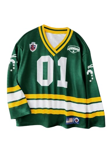 HOT ! SweatyRocks Girl's Number Graphic Jersery T Shirt Oversized Long Sleeve V Neck Casual Tees Top