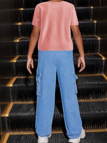 OYOANGLE Girl's Pearl Beaded Short Sleeve Round Neck Knot Hem Shirt Tops Casual Cute Tee Shirt 6
