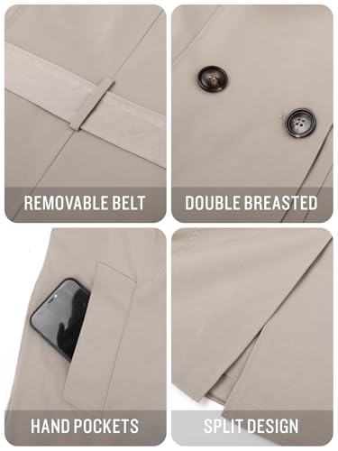 • Detachable Hood & Pockets: Long trench coat with removable hood and belt are suitable for various styles. 2 deep side pockets fit essential items such as mobile phone, key, or cards.