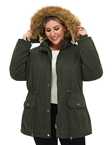 Soularge Women's Winter Plus Size Sherpa Lined Coats with Detachable Hood 1