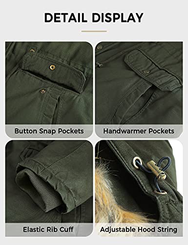 • Windbreaker design: Zip up detachable faux fur hood with sherpa lining and closed by button, the big size efficently keep the wind out and avoid your ears frostbite. And the sleeve botton used elastic rib cuff to protect your hands in the cold