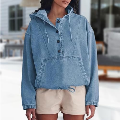 More information about Women’s Denim Hoodie Jacket Lightweight Jean Pullover Casual Long Sleeve With Pocket Drawstring Hood Sweatshirt 2025