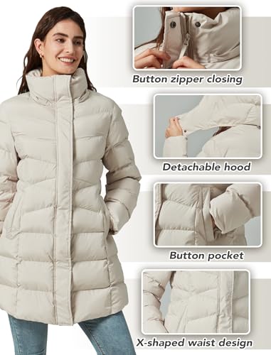 • DESIGN: This mid-length winter coat for women features a pull-up adjustable detachable hood with a drawstring to keep your face and ears warm. It has two deep outer pockets (crafted for your hands) and can store keys, phones and other valuables