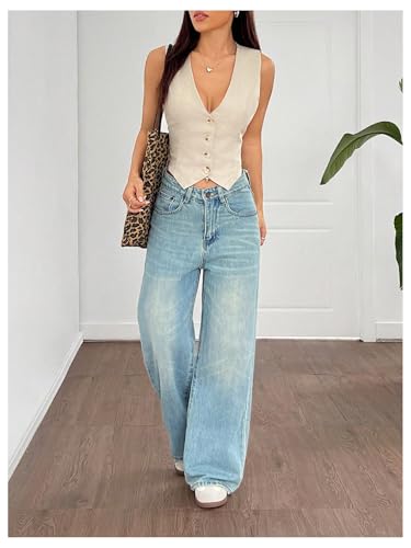 More information about SOLY HUX Women's Sleeveless Blazer Vest V Neck Button Down Crop Vest Tops Work Casual Waistcoat