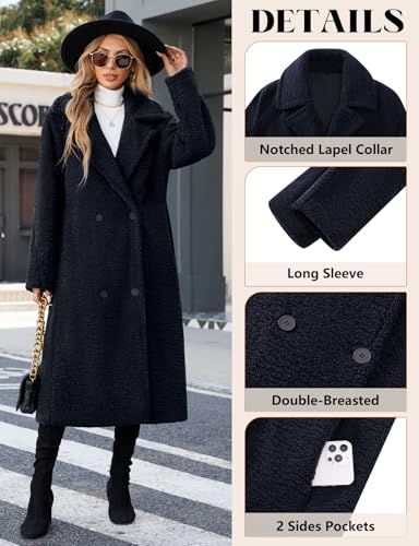 • Stylish Lapel Design: Featuring a classic notched lapel collar and elegant double-breasted button closure, this sherpa long coat women exudes sophistication. The oversized silhouette offers a relaxed, modern fit, while the long, knee-length design provides extra coverage and warmth. Two convenient vertical side pockets complete the chic aesthetic.
