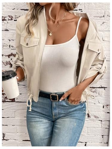 Verdusa Women's Roll Up Sleeve Full Zip Jacket Casual Mock Neck Outerwear with Pockets 6