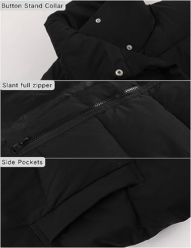 • Womens puffer vest feature two side pockets, stand-up collar, buttons on neck and slant zipper closure design, puffy vest women