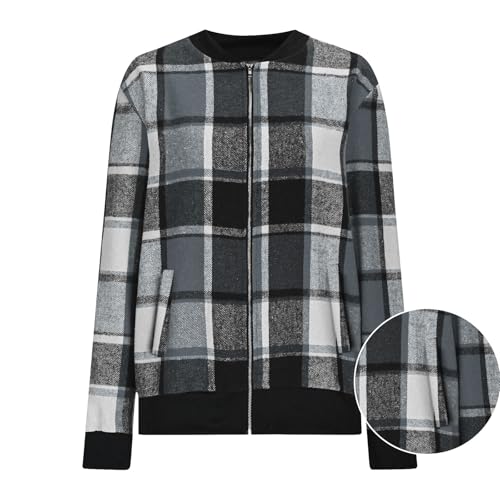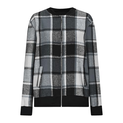 HOT ! Womens Shacket 2025 Zip Up Plaid Flannel Jacket Casual Baggy Long Sleeve Fall Outwear Cardigan Coat Fashion Outfit