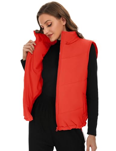 Micoson Puffer Vests for Women Winter Sleeveless Hooded Jacket Quilted Zip Up Stand Collar Gilet with Pocket Loose Fit 5