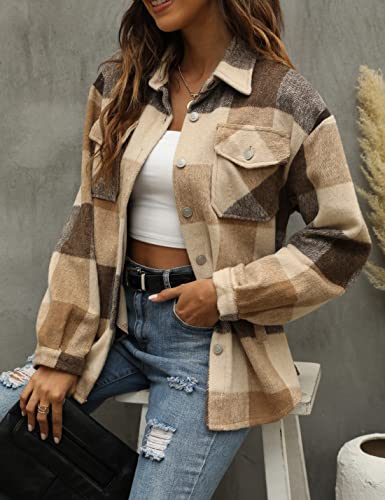 HOT ! Tanming Womens Flannel Plaid Shacket Wool Blend Button Down Shirt Fall Fashion Jacket