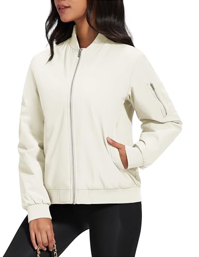 MAGCOMSEN Women's Winter Bomber Jacket Casual Basic Zip Up Padded Coats Water Resistant Long Sleeve Outwear with Pockets 4