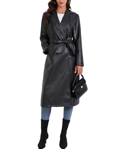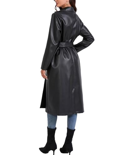 More information about SEMATOMALA Women's Black Faux Leather Long Coat PU Leather Notched Lapel Trench Coat Open Front Maxi Jacket Overcoat
