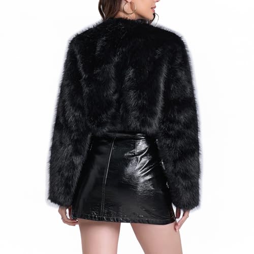 More information about Women's Faux Fur Cropped Coat Long Sleeve Open Front Winter Jacket