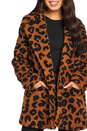 • Stay warm yet fashionable this winter with our Debbie brown leopard sherpa coat. The sherpa coat features a funny leopard print throughout.