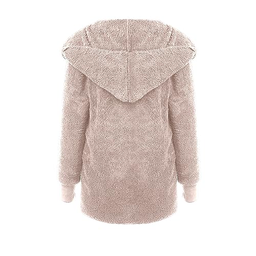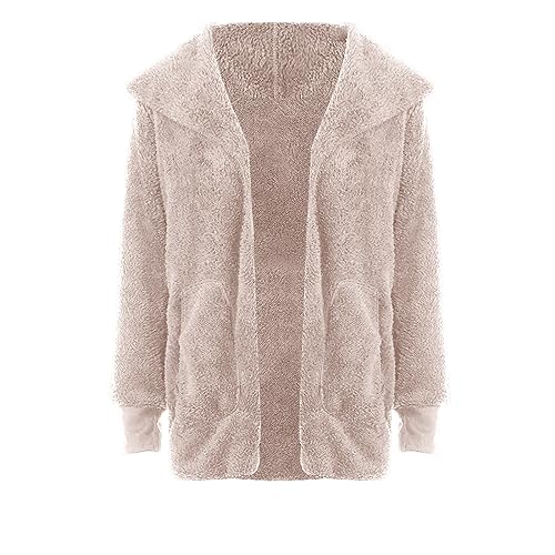 HOT ! Women Oversized Hooded Sherpa Cardigan Fuzzy Fleece Jacket Winter Open Front Fleece Coat Outwear with Pockets