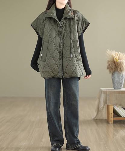 HOT ! Womens Oversized Quilted Puffer Vest Cap Sleeve Stand Collar Zip Up Down Vest with Pockets