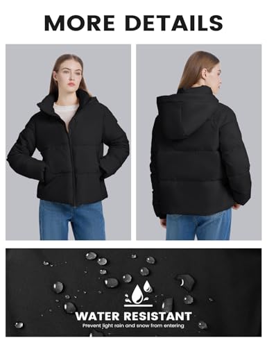 Yimoon Womens Cropped Puffer Jacket Winter Warm Quilted Jacket Short Puffer Coat with Removable Hood 4